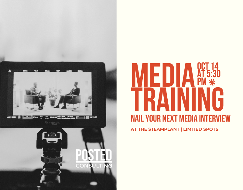 Host Organization: Posted Consulting Description: Learn how to handle a news/media interview like a seasoned professional, with insight from both a PR agency and a former journalist. Join us at Steam Plant Restaurant & Brew Pub on October 14, 2025...