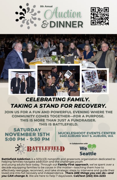 Host Organization: Battlefield Addiction Description: Battlefield Addiction Hosts 8th Annual Auction & Dinner: The Reason AUBURN, WA — November 15, 2025 — Battlefield Addiction, a 501(c)(3) nonprofit teaching families all over WA State how to intervene and guide loved ones...