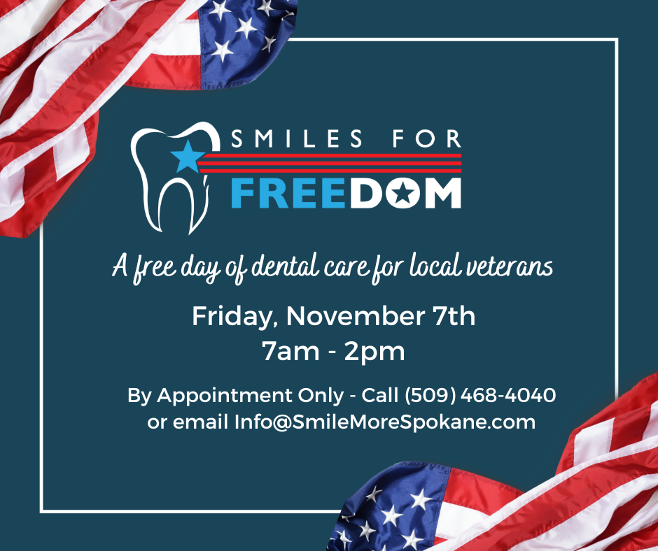Host Organization: Smile More Spokane Family Dentistry Description: We are so excited to announce our sixth annual "Smiles for Freedom" event, hosted by Smile More Spokane Family Dentistry (formerly Bryan Hill DDS), as we extend our gratitude to our local...