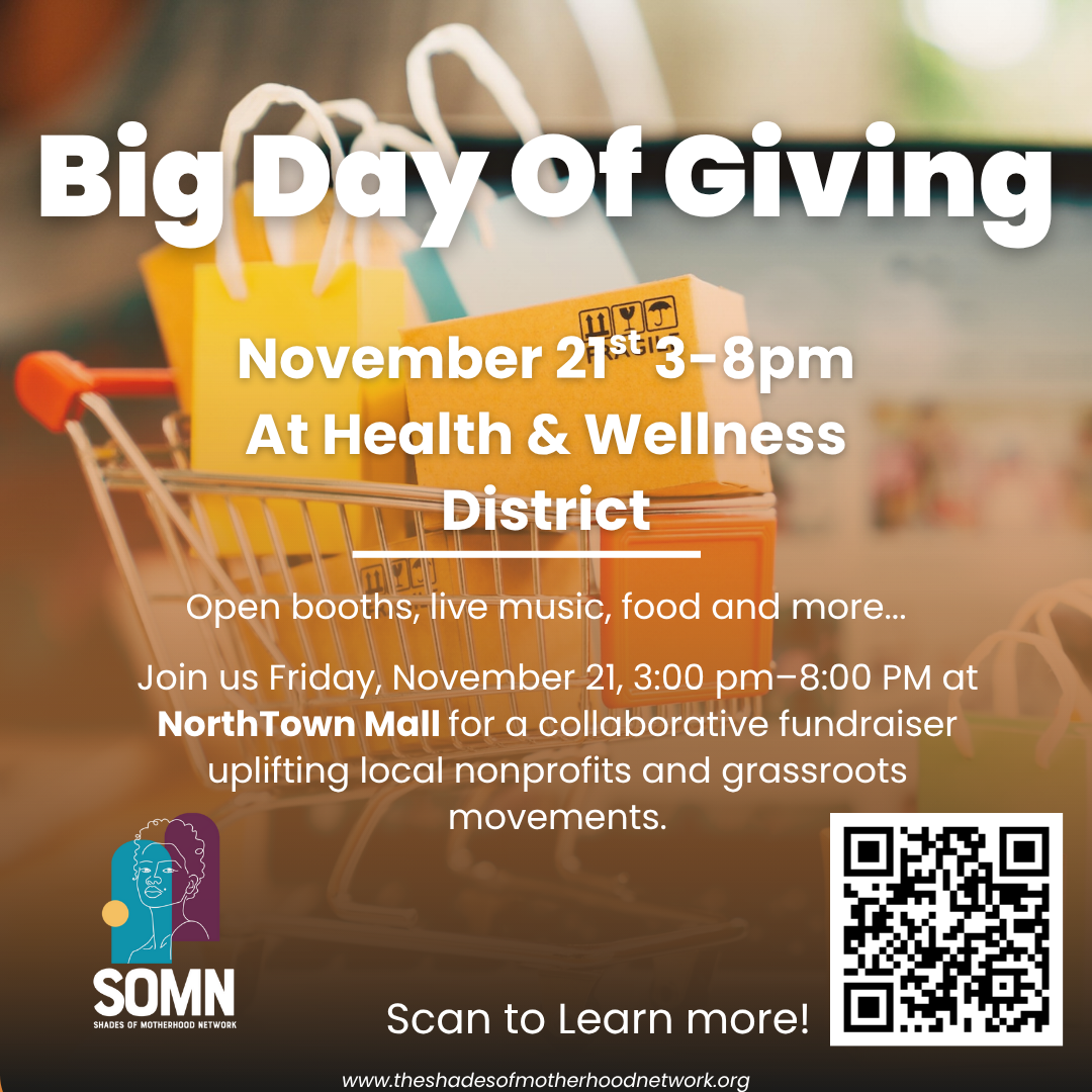 Host Organization: The Shades of Motherhood Network Description: Event Details Join us on Friday, November 21, from 3:00 PM to 8:00 PM at NorthTown Mall for a collaborative fundraiser. This event aims to uplift local nonprofits and grassroots movements. The...