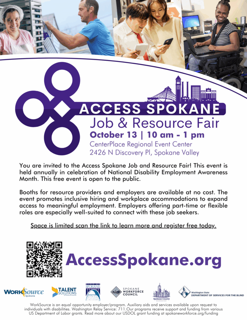 Spokane, WA — This October, the Spokane Workforce Council and community partners proudly present the Annual Access Spokane Resource and Job Fair, a vibrant event honoring National Disability Employment Awareness Month. Local employers are invited to participate in this impactful hiring and resource fair.