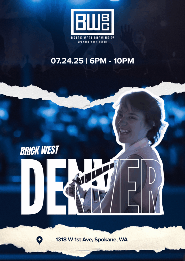 Spokane artist Denver Rhiannon takes the stage at Brick West Brewing on Thursday, July 24 for a night of music and soulful live performance. Catch her from 6:00 to 9:30 PM—free show, all ages welcome, great beer and good vibes guaranteed.