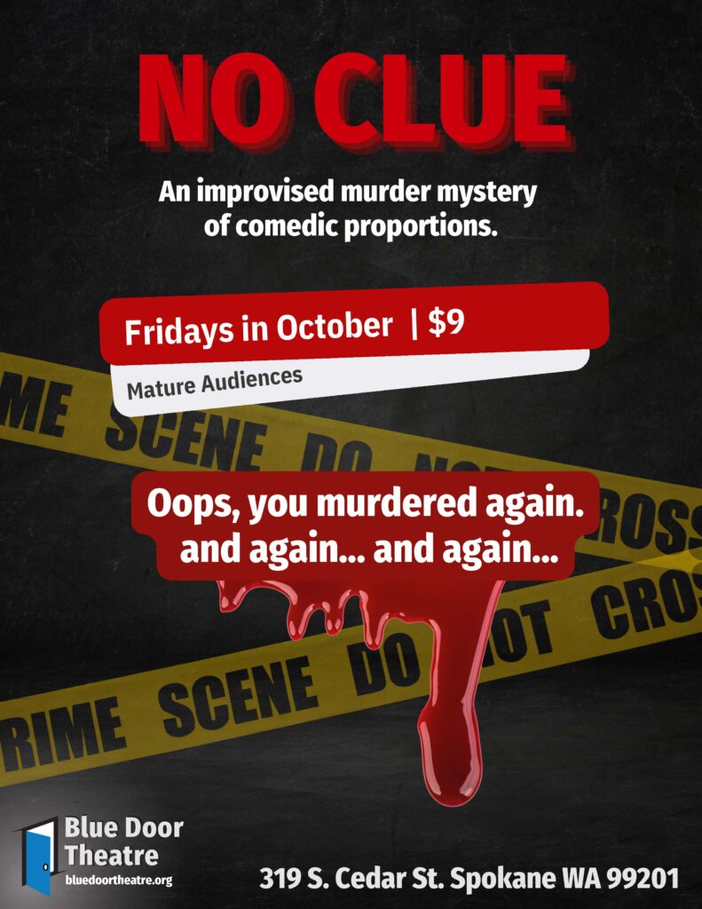 As the story unfolds, the players create scenes filled with intrigue, suspicion, and comedic twists, casting doubt on who is innocent and who is guilty. The catch? No one knows who the murderer is until you vote at the end of the show. Will you uncover the truth, or will you be left with…no clue? Come and find out!