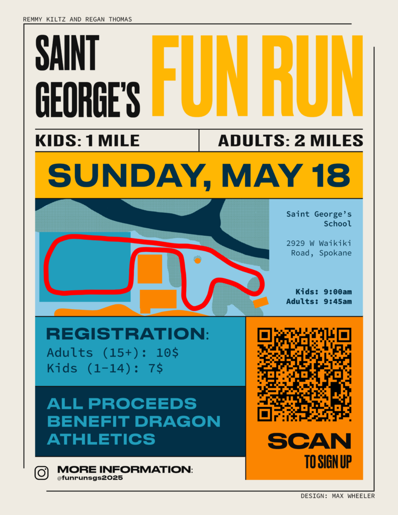 Fun Run hosted on Saint George’s School. All ages welcomed! All proceeds will go to SGS Athletics. Sign up!
