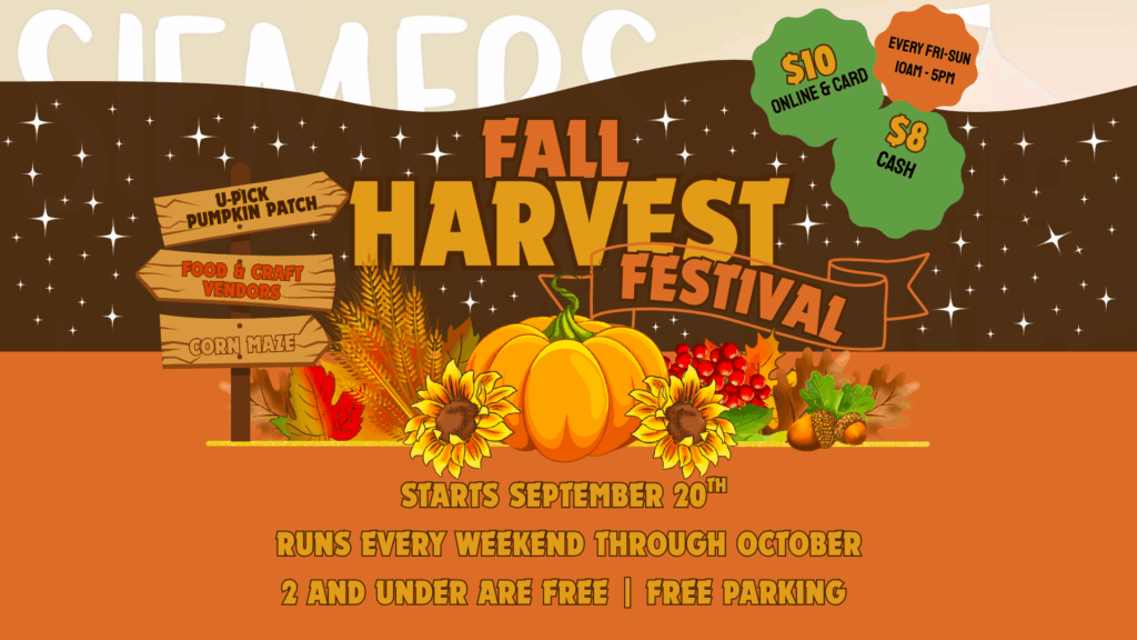 A fall festival for all ages, but we can’t help but to cater to young imaginations. We’re not like most farms on Green Bluff! At Siemers Farm Fall Festival you’ll find surprises around every corner with tricky corn and hedge mazes filled with a mission to get the secret message to find the princess, rouge pirates and a life-size pirate ship playground, and end with the King James Knighting ceremony. In the pumpkin patch you’ll find delights that will make you smile such as “town” themed destinations to explore! See a full list of our activities on our social media (FB & IG) such as FREE line dancing lessons, Good Witches Shows, and vendor demonstrations. For all of this and more, we do require an entry fee – so come make a day of it – you absolutely will not be disappointed.