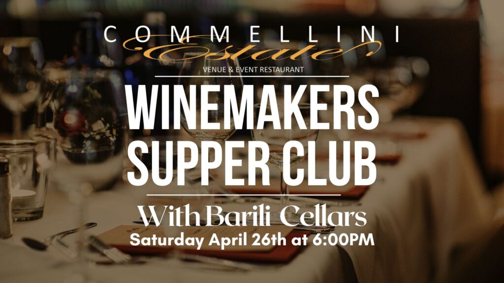 Event Description: Commellini Estate, in collaboration with Barili Cellars, invites you to embark on a journey of indulgence at our Winemakers Supper Club event, taking place on Saturday April 26th. Immerse yourself in a night of Italian culinary mastery paired with exquisite local wines.